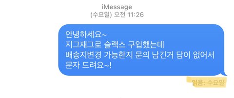 배송지 변경가능한지 ㅈㄱㅈㄱ 판매자 문의를 통해 문의 남겼으나 답변 없음.