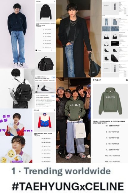 지난 3월 27일 뷔의 절친 최우식의 생일에 모인 우가팸들의 기념촬영 사진이 공개됐다. 뷔는 셀린느의 카키색 후디를 입고 편안한 스타일을 선보였는데 사진이 공개되자 이 제픔은 전사이즈가 품절돼 '셀린느 보이' 명성을 입증했다.