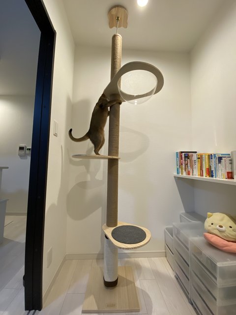 침대방에 작은 공간이 있어서 고양이타워를 설치해줬어요.