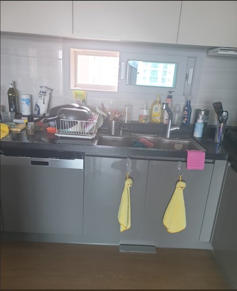 씽크대 옆 수저통도 엎어져 있었고, 구석쪽의 저희의 손길이 닿지 않은 곳에서 아이의 발자국 같은것도 남아 있었습니다.