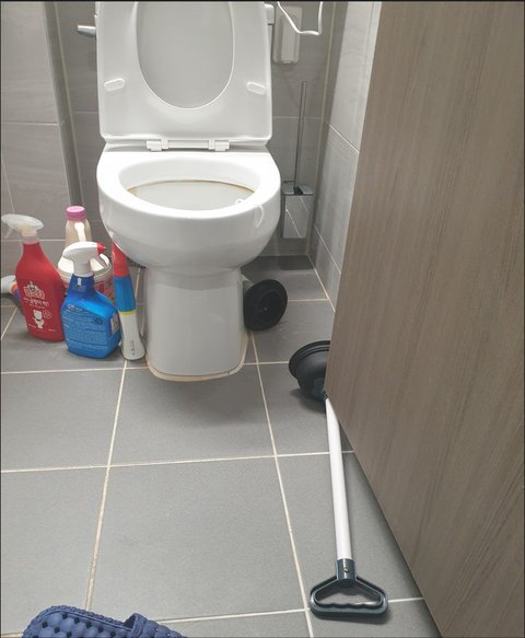 마치 급하게 도망친 흔적인듯 화장실 변기 옆 뚜러뻥은 엎어져 있었고