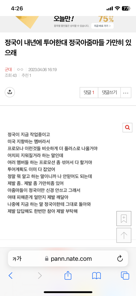 ‼️조방‼️ 정국이 내년에 투어한대 정국아줌마들 가만히 있으래