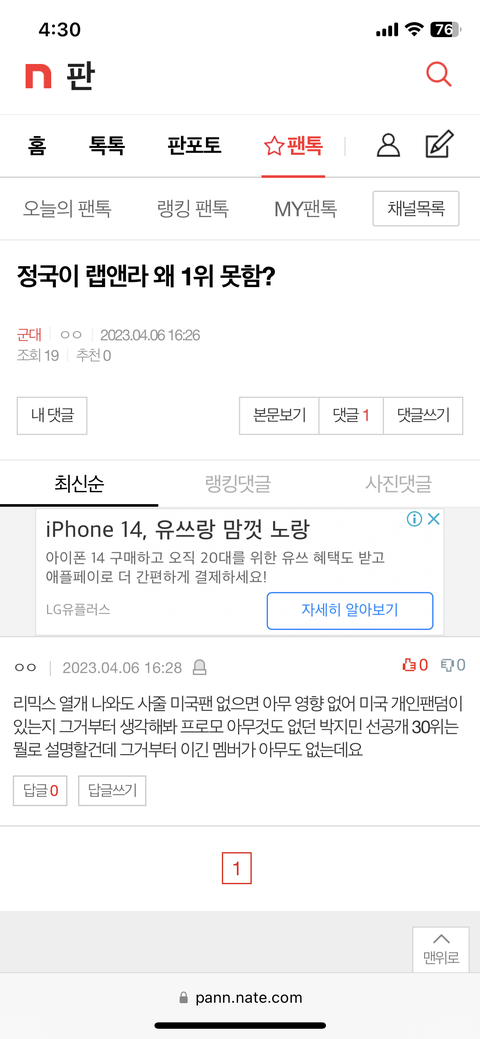 팬톡 댓글 검색 보기