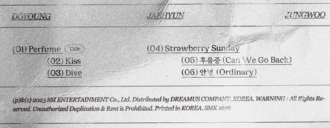 퍼퓸(타이틀,첫만남) -> kiss(첫키스) -> dive(사랑에빠짐) ->스토르베리 선데이(일요일 데이트) -> 후유증(헤어짐후 후유증) ->안녕(이별 극복)으로 이어지는 노래 예상중임