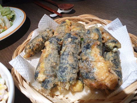 당면에 당근과 청양고추 넣고 김말이 만들어 튀김