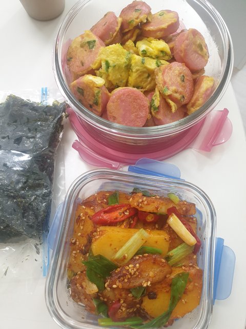 소시지부침과 감자조림