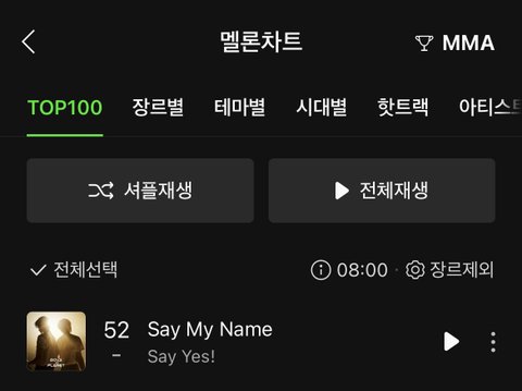 유일하게 멜론 차트 탑 100 안에 들어서 낮은 순위도 아니고 52위 기록함