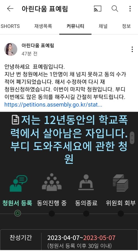 더 글로리 실사판- 학폭피해자유튜버 아린다움 표예림님 청원해줍시다