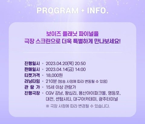 보플 cgv 생중계 자세한 일정 떴다