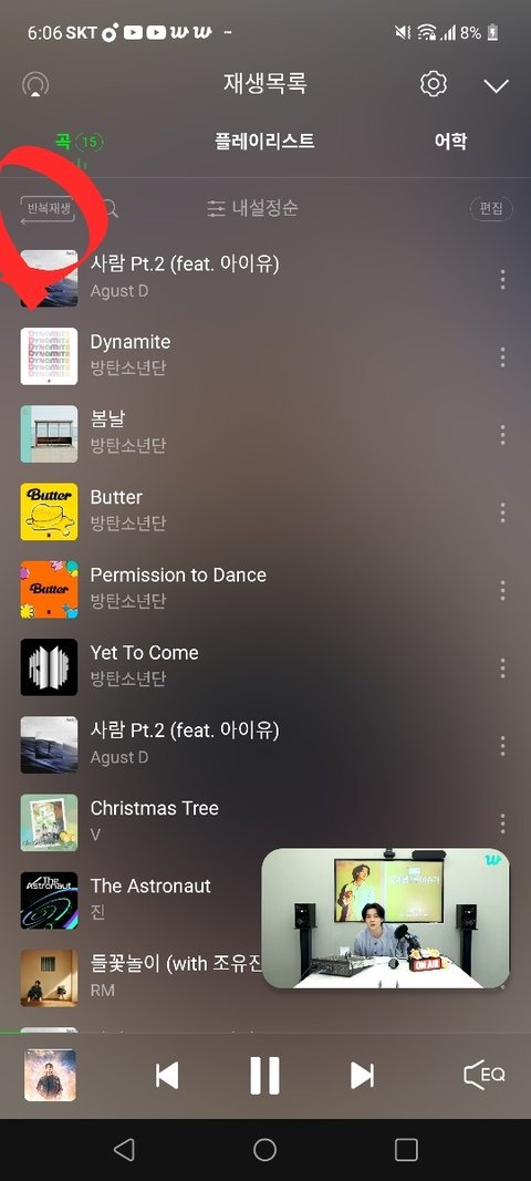 4. 재생목록엔 반복재생 누르면 안돈ㅁ