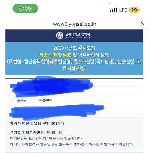 2023 연대 수시 예비 1번으로 떨어진 사람이다