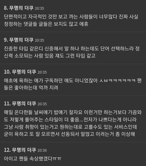 처음엔 악플 1000개 달았다가 오해풀고 댓400개정도 다 저런 반응임