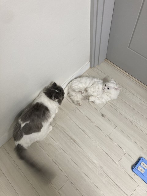 가끔...아니 자주 싸우기도 하지만, 회색털이 더 많이 뽑혔다는거... 야무지네요 ㅋㅋ