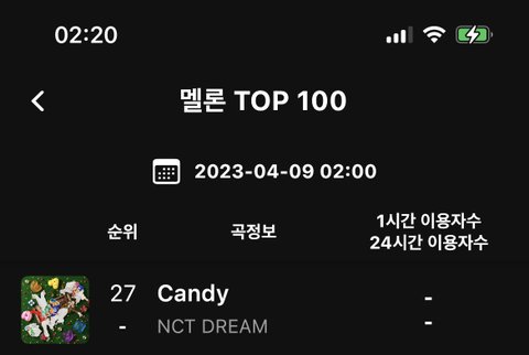 우리 멜론 프리징 20위대로 올라온 거… 무려 어제보다 4계단이나 올라와서 27위다… 멜론뿐만 아니라 지벅플도 오늘 성적 너무 좋아… 이제 곧 있으면 캔디 나온 지 4개월이 다 되어가는데 아직도 상위권인 거 너무 좋다 캔디 기특해요 준표들 기특해요 캔디와 대답해의 축복이 끝이 없다… 대답해 오면 우리 항상 좋은 일이나 소식 들리는 거 다들 알고 있지? 오늘 또 왜 저러나 싶었는데 오늘 우리 성적 최고다!