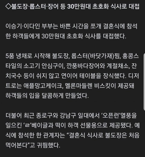 미국 디자이너 브랜드 제품들. 대여에만 각 수천만원. 구매했다면 수억원.이 외 웨딩 촬영 및 본식 촬영, 예물과 예단 합치면5억~10억정도 예상한다고 함.그동안 있었던 한국 연예인 호화 결혼식에서도 끝판왕급.