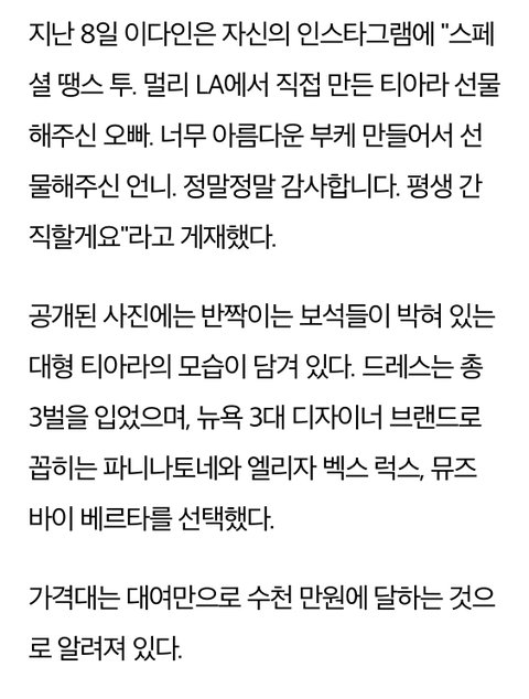 보석 박힌 초호화 티아라는 대여 아닌 이다인 개인 소장품.