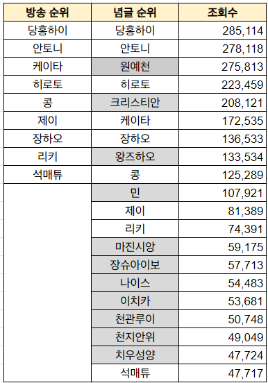 (왜 4등이냐면 k,g 통틀어서 석매튜 비주얼순위가 최하 4위라서 최대한 석매튜 유리하라고)