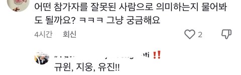 여기서 wrong 한 사람들 성한빈 제외 에프포임 미치겠다 이러면서 ㅈㅇ,ㅋㅇㅌ 투표 유도하는데 하 우리 투표 분산되면 망할거 같음 진짜ㅠㅠㅠ