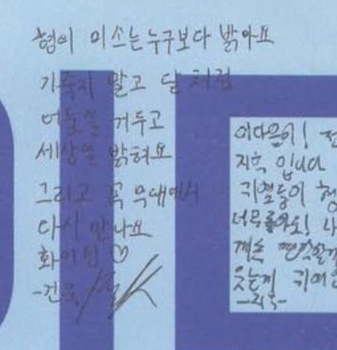 형의 미소는 누구보다 밝아요 기죽지말고 달처럼 어둠을 거두고 세상을 밝혀요.. 이 문장 넘 감동이야 이제 말 조심만 하면 차애 될거 같음❤️