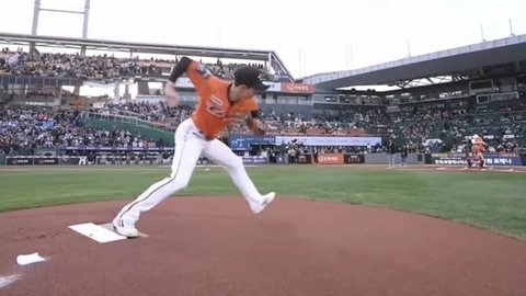 발판 밟고 우완 사이드 암으로 공을 던짐 ㄷㄷㄷㄷㄷㄷㄷㄷ