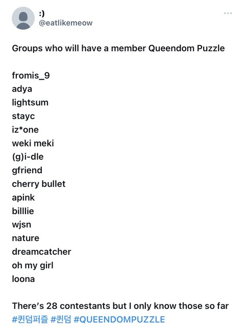 프로미스나인 에이디야 라잇썸 스테이씨 아이즈원 위키미키 (여자)아이들 여자친구 체리블렛 에이핑크 빌리 우주소녀 네이처 드림캐쳐 오마이걸 이달의 소녀