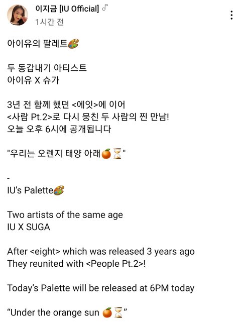 오늘 오후6시 슈가 아이유 팔레트 나옴