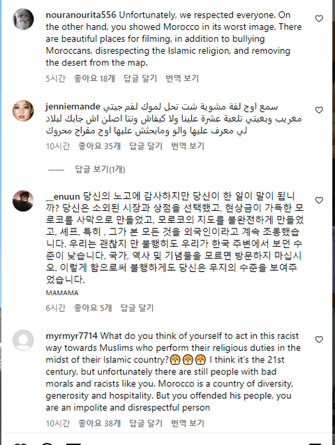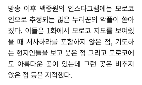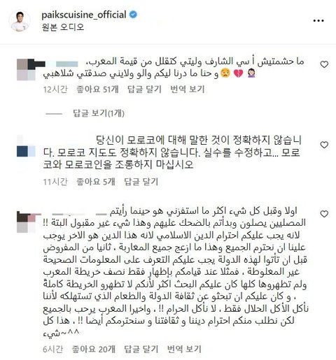 방송 본 모로코인들이 현재 백종원 인스타 테러 중인 상황