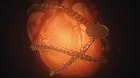가슴 속에서 불빛으로 심장이 두근거리는 모습