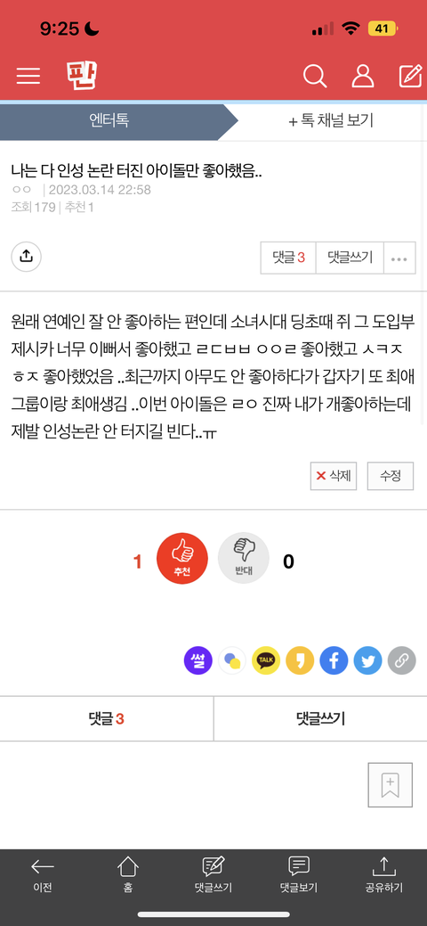 댓글 많은 톡