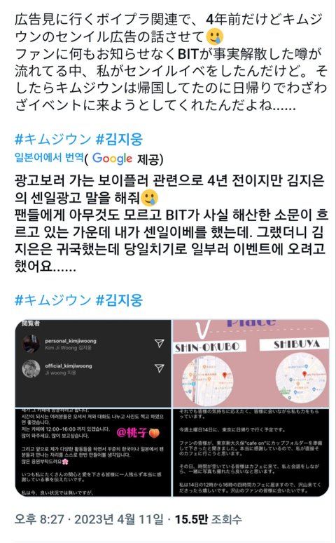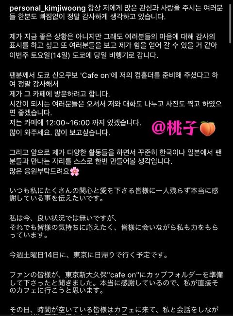 한 일본 팬이 신오쿠보 거리에 김지웅 생일 카페 열었음