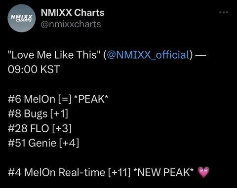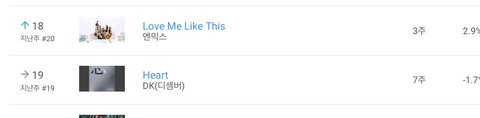 차트 아웃 -> 90위 -> 50위 -> 20위 -> 10위 -> 6위