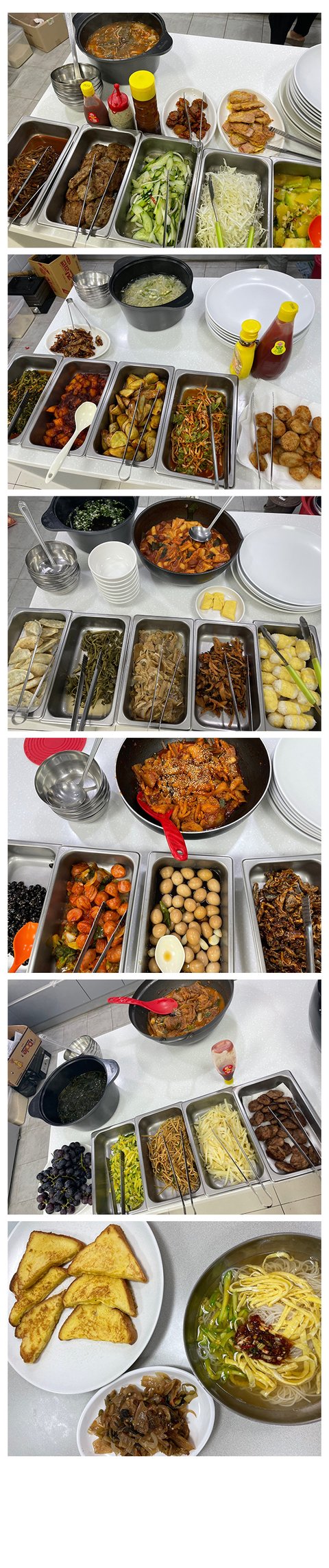 이모님 손맛과 솜씨도 대단하지만 재료 같은거 아끼지 않고 만들 수 있게 지원해주는 회사도 있어야 저게 가능.. 비슷하게 진행하는 회사 봤는데.. 거긴 식재료 살 돈을 너무 아껴서.. 아주 그지 같았음. 콩나물 싸다고 몇박스 사가지군.. 그걸 며칠 동안 먹게 했다나 머라나 ㅎㅎㅎ 고기 반찬도 없이 말이야..