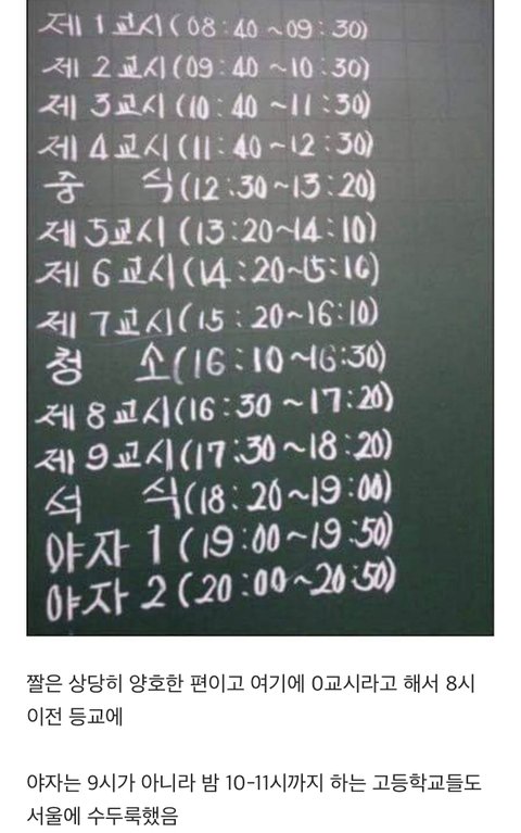 10년전 고등학교 시간표 개오진다