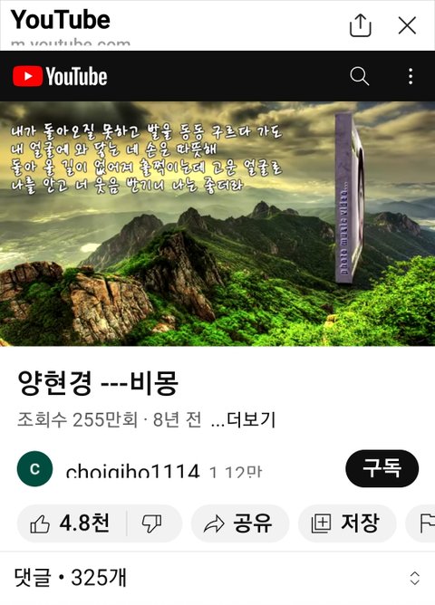 (사진1 설명) <유튜브 화면> 양현경 비몽 - 작사/작곡 하덕규