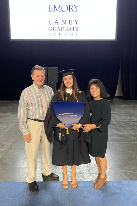 (사진1 설명) 미국 미희 누나 딸 대학교 졸업식 때 미국 미희 누나 가족 기념촬영 사진