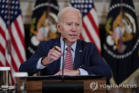 (사진2 설명) (워싱턴DC AP=연합뉴스) 조 바이든 미국 대통령이 지난 4일(현지시간) 백악관에서 인공지능(AI)와 관련한 과학기술자문위원회 회의를 주재하고 있다. yerin4712@yna.co.kr