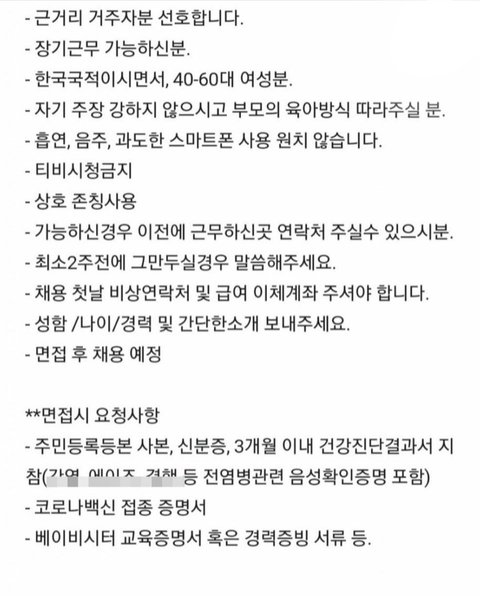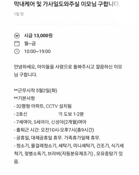 가사도우미 구인공고(당근마켓에서 퍼옴)
