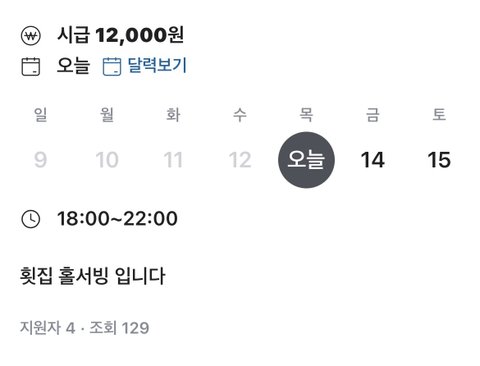 당근 알바 구했던글 보니까 꽤나 많은 사람들이 하루알바를