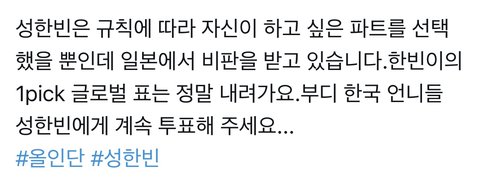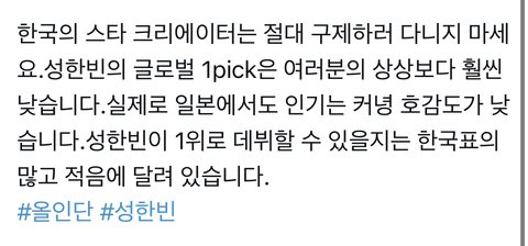 걍 성한빈이 부동의 1위라서 뭘해도 까는듯 ...ㅋ 특히 일본에서 견제오지는거같음