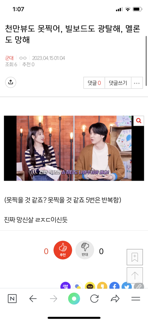 ‼️조방‼️천만뷰도 못찍어, 빌보드도 광탈해, 멜론도 망해