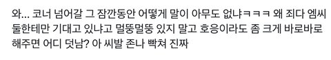 아니 근데 몇 명 빼고는 대부분 토크 비중 큰 장시간 라이브가 처음이잖아... 심지어 긴 라이브 경험해 본 연생도 이런 식의 코너 진행은 당황스러울만큼 처음일텐데 이건 제작진이 악질인 거지... 적어도 연생들한테 괜히 MC 시켜서 부담감 주지 말고 MC 섭외라도 하지 차라리