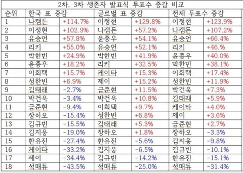 먼저, 어제 파자마 파티 봤지? 순위 공개 안 해준 거.. 원래라면 걸플때처럼 파자마 파티 때 중간순위를 공개해!! 중간순위를 공개하면 정병존 투표수가 불안감 때문에 온갖 사람들이 모여서 투표를 하고 콘크들이 안정을 해 해이해져 표수가 좀 줄어서 데뷔권이 많이 바뀌어!!