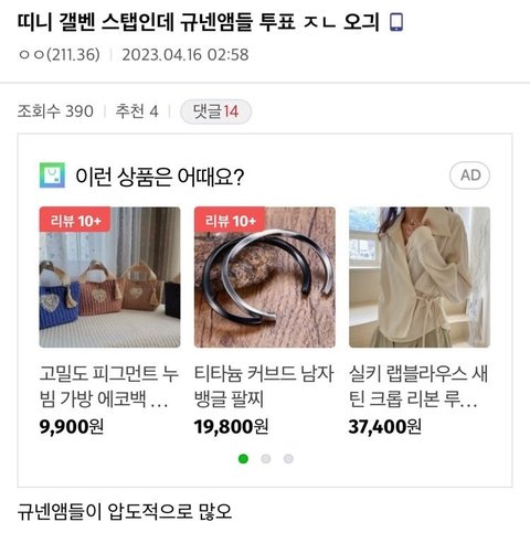 혹시 그래서 정신을 차리지 못한 규비니스트들은 지금이라도 규빈이 투표해 주고, 영업해줘!! 우리에게 이제 희망은 없어..혹시 다른 겔벤에 갔던 친구들은.. 차라리 규빈이 겔벤해..ㅠㅠ 그리고 혹시 픽이 떨어졌거나, 남는 팬들은 너무 마음이 아프겠고, 슬프다는 사실을 내가 전 서바에서 겪어서 너무 잘 알아.. 그래서 이런 부탁을 하는 게 너무 미안해서 차마 부탁하기 또 미안했지만.. 내가 너무 간절해서 우리 규빈이 투표 부탁할게 미안해ㅠㅠ 누구라도 괜찮아 우리 규빈이 딱 한번만 투표해줘ㅠㅠ 부탁할게.. 너희가 필요한게 있음 나도 도울게!! 여기 댓에 적어두면 소판이나 피크면 나도 투표하고 다하고 스밍이나 음방투표도 할게ㅠㅠ