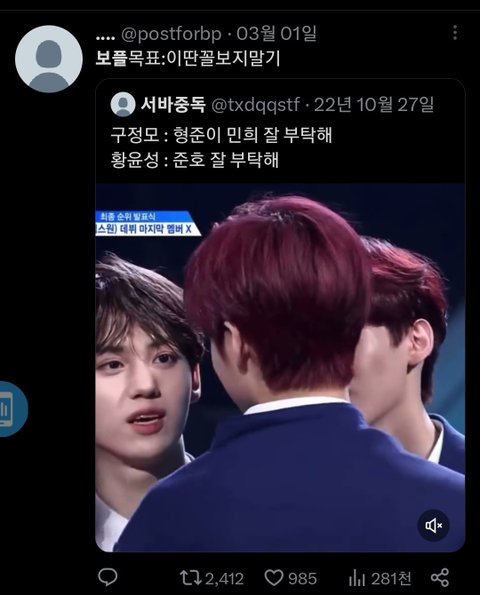 어제, 오늘만 틧터랑 판에서 김규빈 안정권이어서 안 뽑겠다, 콘크인 애를 굳이 왜 뽑냐 등의 말도 안 되는 소리를 들어서.. 급하게 써봐 누구든 좋아!!꼭 읽어줘!!! 특히 보플 퉆하는 친구들과 규비니스트들!!
