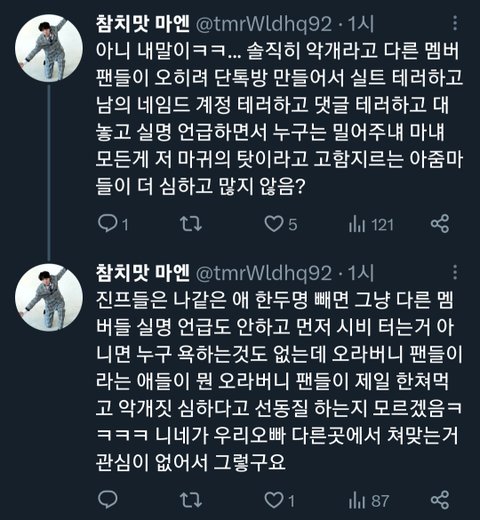 본인들도 다른 멤버 까내리는 악개짓 하고 있는 걸 자각 못 함 워딩 봐라 저게 악개 아니면 뭐임