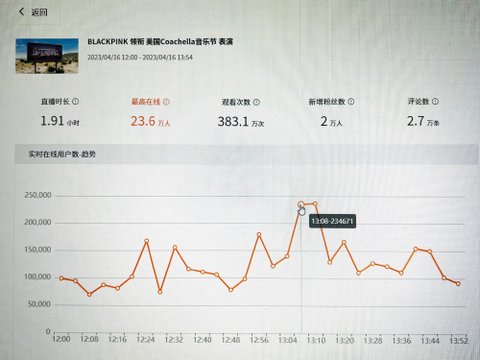 블핑 코첼라 로제 솔로때 23만 6천명 시청자 피크찍음