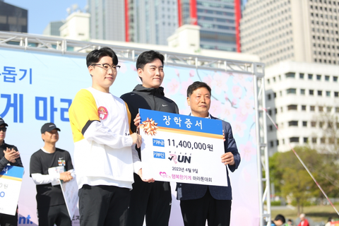 이번 마라톤 대회 참가비로 마련된 장학금1천140만 원은
