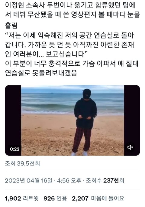 데뷔무산되고 뜬 영상편지라는데 개슬퍼ㅠㅠㅠㅜ