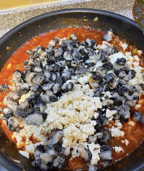 ( 묵은지 넣어서 먹으니 너무 맛있었어요!)