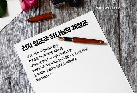 계시록 21장에 새 하늘과 새 땅을 창조하실 것을 약속해 주셨습니다.